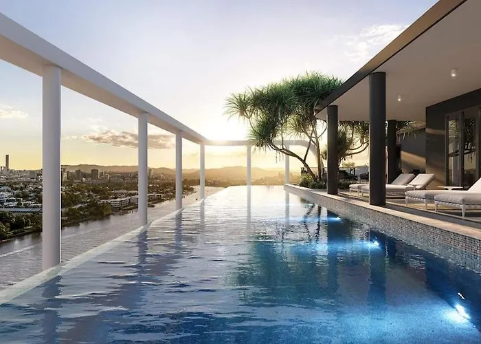 River & City View Apt Near Brisbane Airport With Infinity Pool, Spa, Sauna, Steam Room est situé dans la localité de "Hamilton", à moins de 5 minutes de marche de Dendy Cinemas. L'appartement offre baignoire chaude et espace de pique-nique.